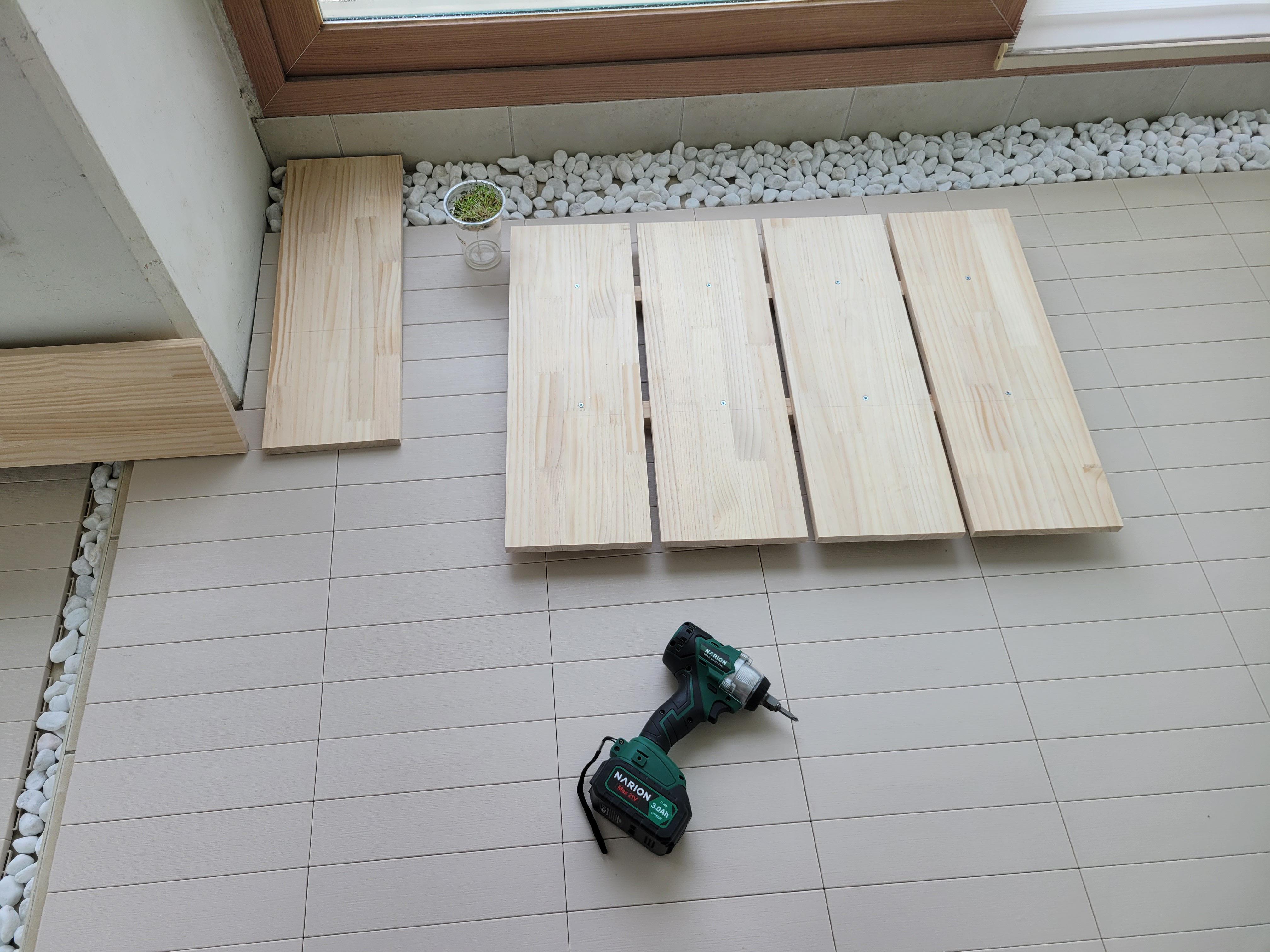 베란다에 벤치도 아직 완성해야하는... ㅠㅠ